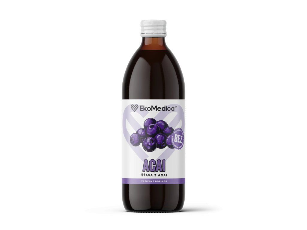 Acai šťava EkoMedica SK je 100% prírodný nápoj z bobúľ acai, známych svojím vysokým obsahom antioxidantov a bioaktívnych látok. Tento produkt prispieva k detoxikácii organizmu, zlepšuje elasticitu ciev, podporuje zdravie tráviaceho traktu a regeneráciu svalov po fyzickej aktivite. Acai je ideálnym doplnkom pre športovcov, ale aj pre všetkých, ktorí chcú podporiť zdravie srdca, metabolizmus a celkovú vitalitu.
