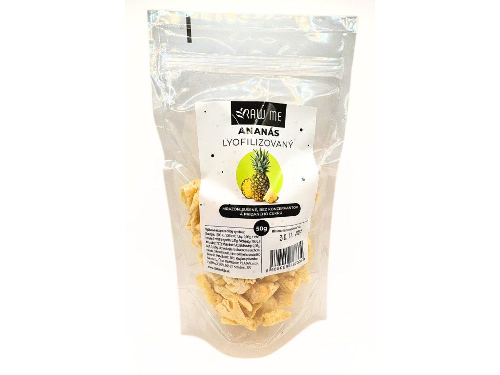 Doprajte si exotickú chuť ananásu v jeho najčistejšej forme. Lyofilizovaný ananás Raw Me je spracovaný šetrnou metódou mrazového sušenia, ktorá zachováva jeho prirodzenú chuť, arómu aj dôležité živiny.