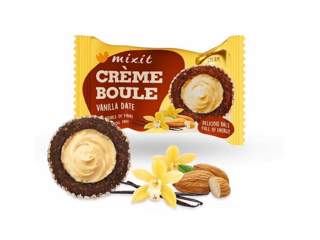 Mixit Créme boule – Vanilla Date 30g je dokonalou kombináciou sladkých datlí, jemného mandľového krému a pravej bourbon vanilky. Každá krémová guľôčka ukrýva zamatovú náplň, ktorá sa v ústach krásne rozplýva a vytvára harmonickú chuť plnú jemnosti a sladkosti.