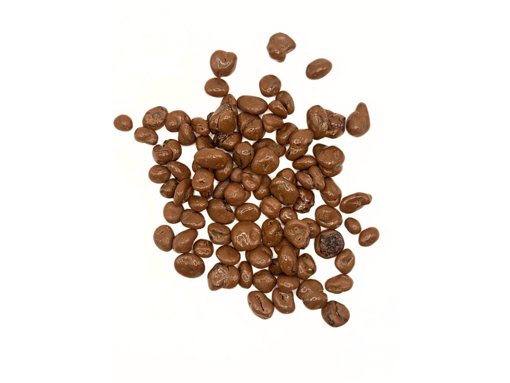 Zloženie: hrozienka sušené, mliečna čokoláda 49 % [ cukor, kakaové maslo, sušené MLIEKO, sušená SRVÁTKA ( MLIEKO ), kakaová hmota, emulgátor SÓJOVÝ lecitín, aróma ( vanilín )], leštiaca zmes [ glukózový sirup, povlaková látka ( arabská guma, šelak ), rastlinný olej (kokosový, repkový), maltodextrín ].