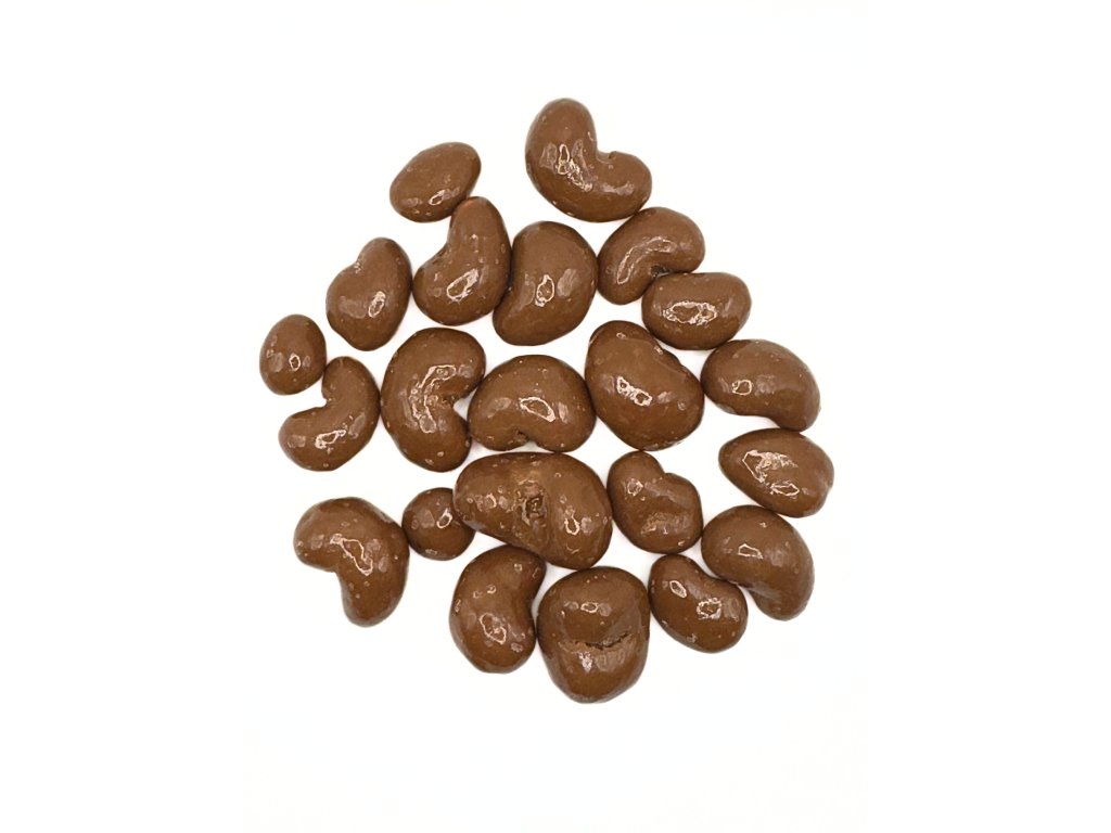Zloženie : mliečna čokoláda 74 % [ cukor, kakaové maslo, sušené MLIEKO, sušená SRVÁTKA, kakaová hmota, emulgátor : lecitíny (SÓJA), aróma (vanilín)], KEŠU ORECHY jadrá pražené 25 %,leštiaca zmes [ glukózový sirup, povlaková látka ( arabská guma, šelak ), rastlinný olej (kokosový, repkový), maltodextrín ].