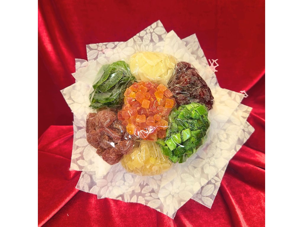 Kiwi , ananás kocky, jahody, čerešne, aloe vera, papája, pomelo kandizované