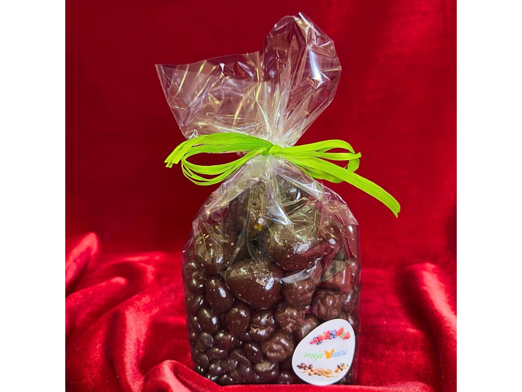 Višne, brusnice, jahody lyofilizované, hrozienka a kokos v horkej čokoláde